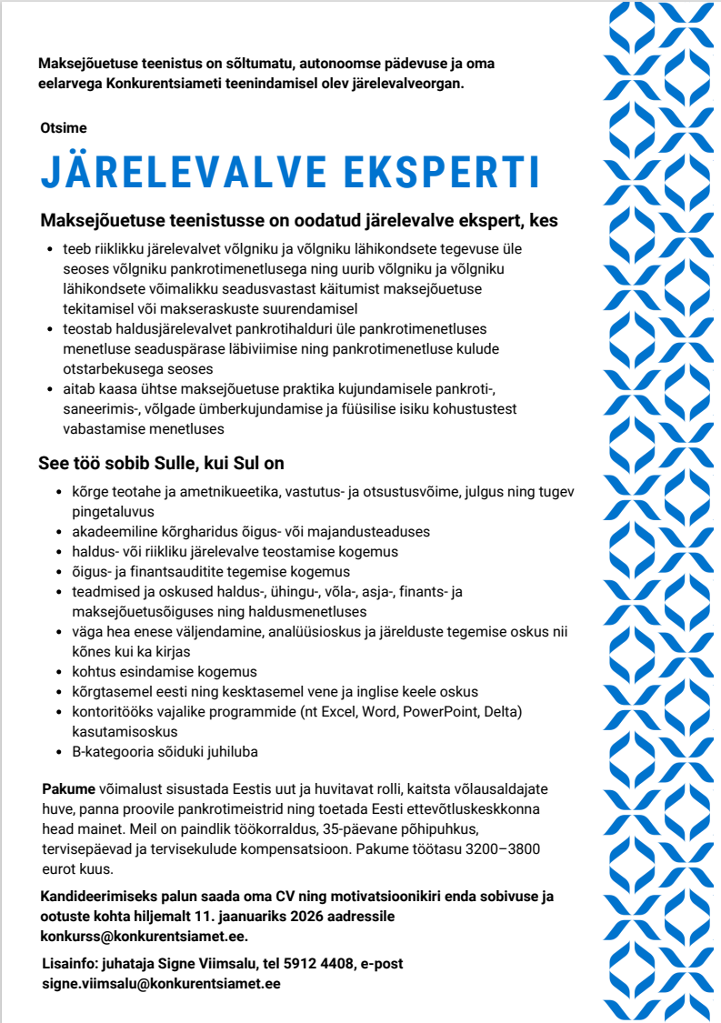 Tiimiga on oodatud liituma järelevalve ekspert. MJT järelevalve ekspert | 353.06 KB | png Last updated: 05.01.2026